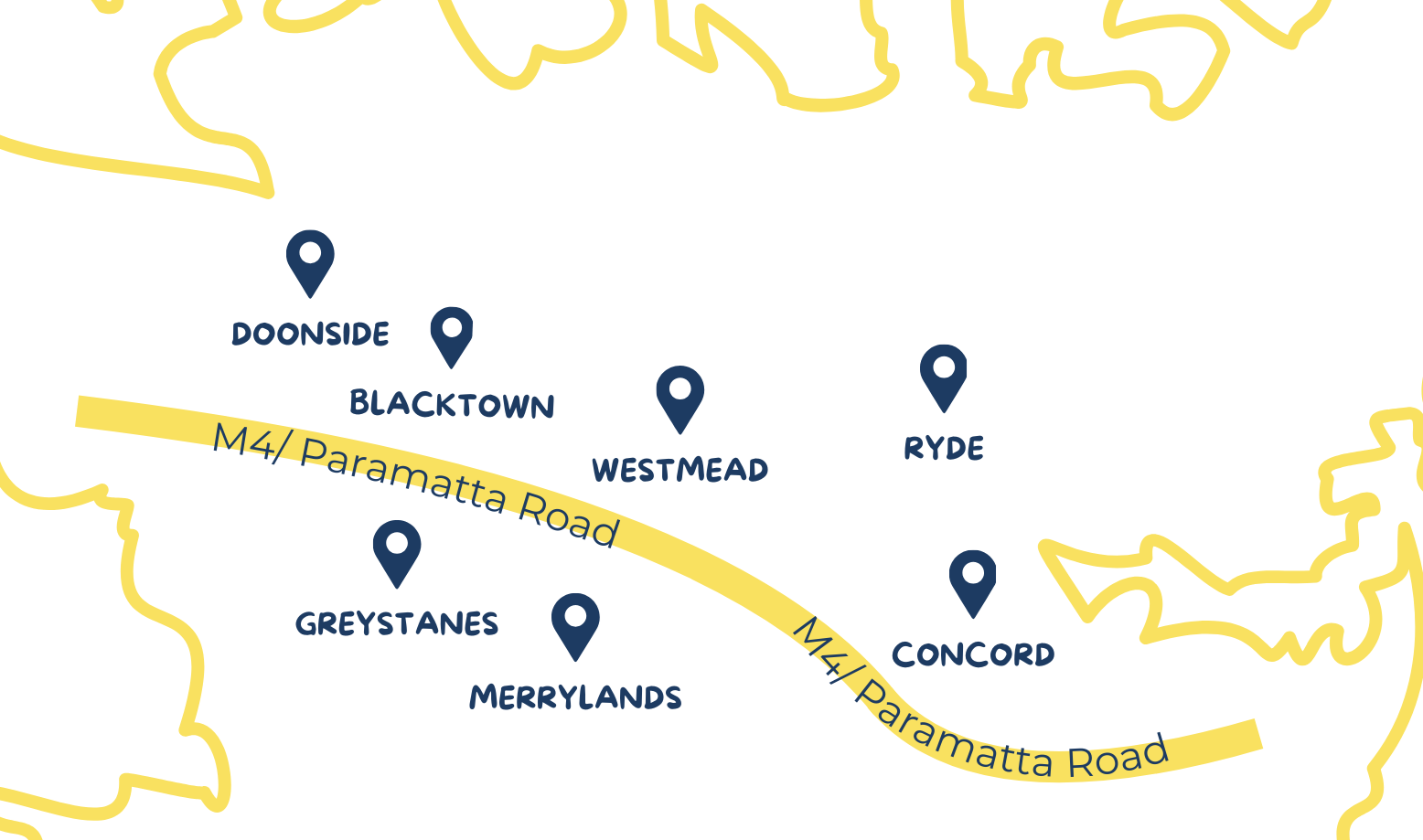 | Strathfield Burwood North Strathfield Homebush Five Dock Concord Concord West Rhodes Ryde Lidcombe Granville Clyde | Blacktown Doonside Wentworthville Westmead Woodcroft Marayong Pemulwuy Greystanes Merrylands Prospect Seven Hills |